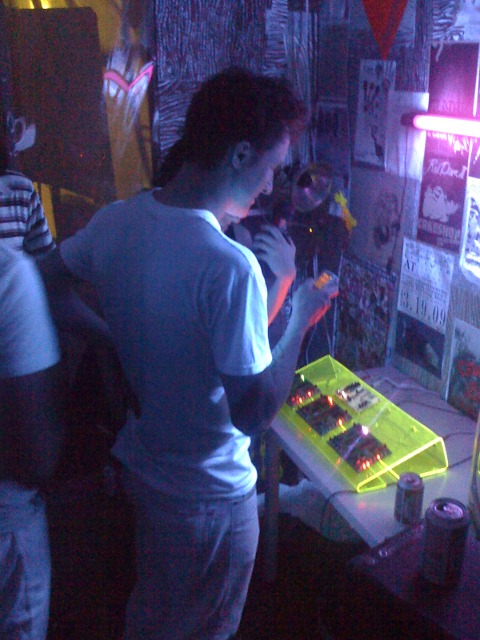 Then there was Dorkbot which was a blast. Above you can see me in front of a page of C code (looks like the ISR) apparently casting some kind of spell.
